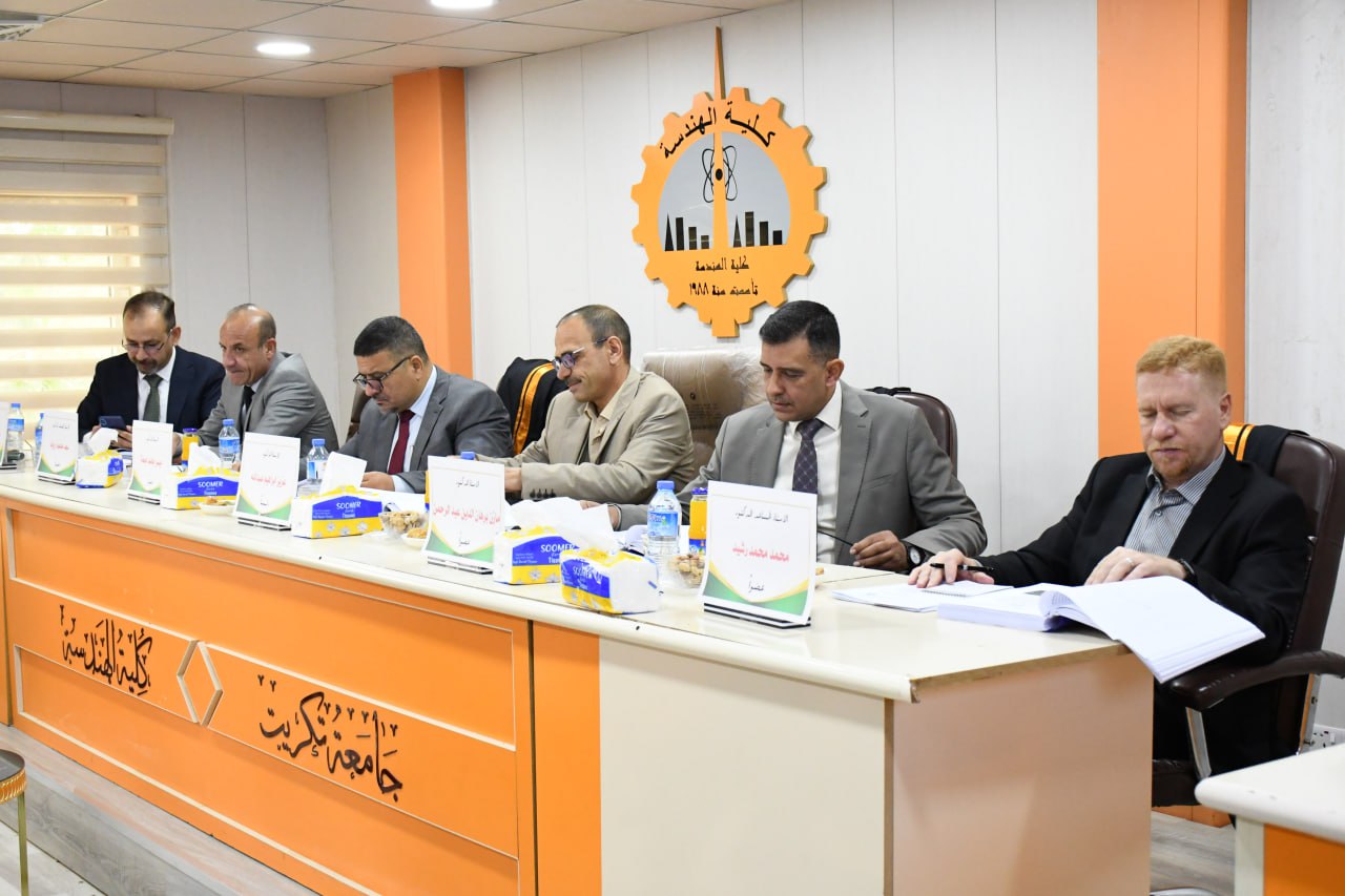 نوقشت يوم الاثنين الموافق 29-4-2024 وعلى رحاب قاعة مناقشات عمادة كلية الهندسة وبحضور السيد عميد الكلية الاستاذ المساعد الدكتور خالد حمود مضحي الجنابي اطروحة الدكتوراه للباحث ( عدنان ابراهيم عبد الله ) / قسم الهندسة المدنية والموسوم torsional resistance of concrete beam stiffened internally with steel reinforcement in different configuration